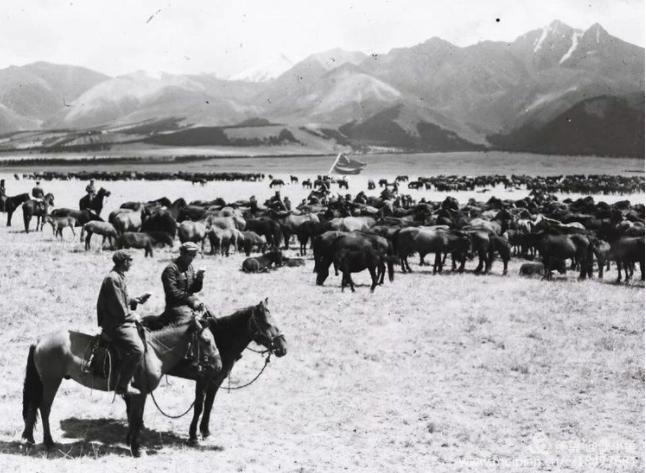 中国人民解放军第一野战军和西北军政委员会接管军马场,牧养良马