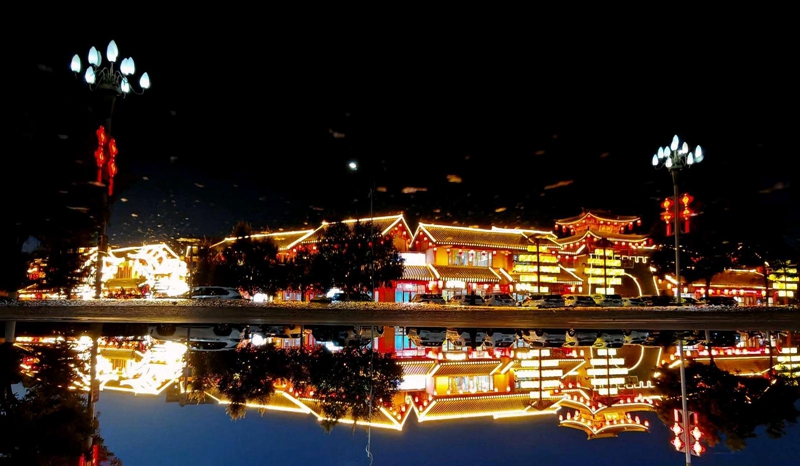 10月21日,夜幕降临,华灯初上,夜晚的山丹县城流光溢彩、美轮美奂。绚丽多彩的灯光点燃了城市的夜色,不仅照亮了小城的夜晚,更点亮了人们心中的温暖与热爱。(摄影 翟继宗)