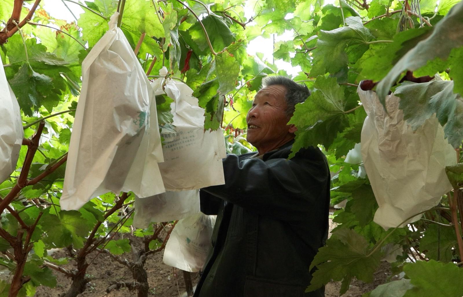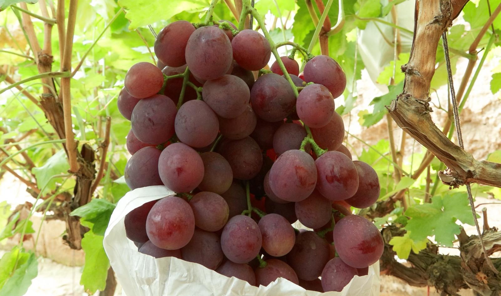 来到不远处的东乐镇山羊堡村,棚内种植的红提葡萄已成熟上市,呈现一派丰收的景象。一串串饱满诱人、晶莹剔透的葡萄挂满枝头,让人垂涎欲滴。种植户马上学正在采摘订单葡萄,沉甸甸的葡萄让他眉开眼笑。