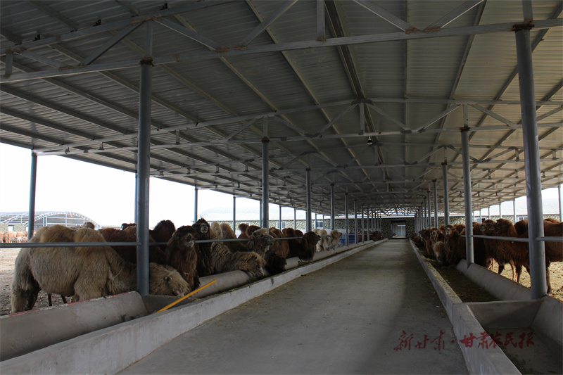 连日来,位于山丹县清泉镇红寺湖村茫茫戈壁上的甘肃龙峰农牧科技有限公司内,450峰母骆驼及200多峰幼驼在圈舍内悠然自得,或进食、或哺乳,一派“母慈子孝”场景。