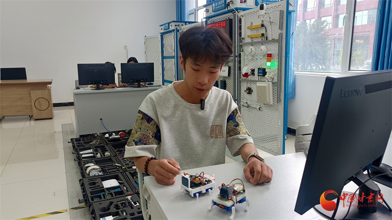 培黎职业学院信息技术学院学生唐俊杰和他的创新团队最近组装了两只机器狗,通过语音遥控可以实现指令输出,达到陪伴、互动的目的。唐俊杰说,“手脑并用、创造分析”鼓励他们要理论联系实际,以动手能力让图纸变成现实,机器狗是他们的在实践课程中不断创新探索而来。