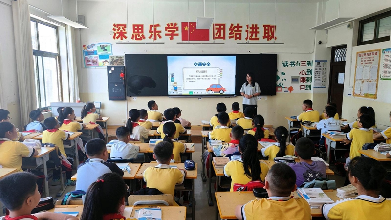 与幼儿园的轻松氛围不同,山丹县清泉学校的校园里多了几分专注。完成报到工作后,各班级的“开学第一课”紧接着拉开帷幕。六年级(1)班的教室内,一堂安全教育课正有序开展。老师一边播放交通安全警示图片,一边结合校园食品安全的真实案例细致讲解,“同学们,过马路一定要走斑马线,注意观察红绿灯,在学校食堂就餐时也要留意食材新鲜度。”恳切的叮嘱声中,学生们听得聚精会神,遇到不理解的地方还会主动举手提问,课堂互动热烈又融洽。