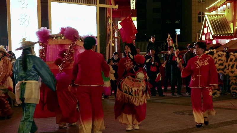 “咚咚锵!咚咚锵!”阵阵锣鼓声中,“家国团圆·非遗欢歌”展演率先点燃了现场热情。两只威武的“雄狮”踏着铿锵的鼓点腾跃起舞,精湛的技艺赢得观众阵阵喝彩。紧接着上演的“赶驴”更是妙趣横生,表演者通过惟妙惟肖的肢体语言,将赶驴、骑驴的场景演绎得活灵活现,憨态可掬的模样引得孩子们欢笑追逐,现场气氛愈发热烈。