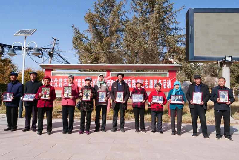 深秋的山丹,天空澄澈如洗,阳光透过稀疏的云层,温柔地洒在这片土地上。山丹县文联精心策划并组织开展“我为乡亲拍张照”新时代文明实践文艺志愿服务活动,现场为150余位老人拍摄生活纪念照,并现场打印装裱赠送,用镜头定格老人们岁月的印记和生活中的瞬间,将时代的温情悄然浸润老人们的心田。