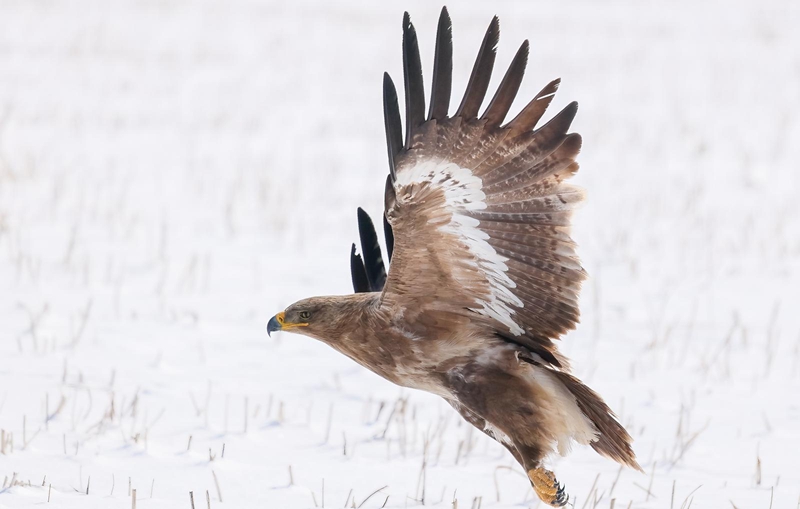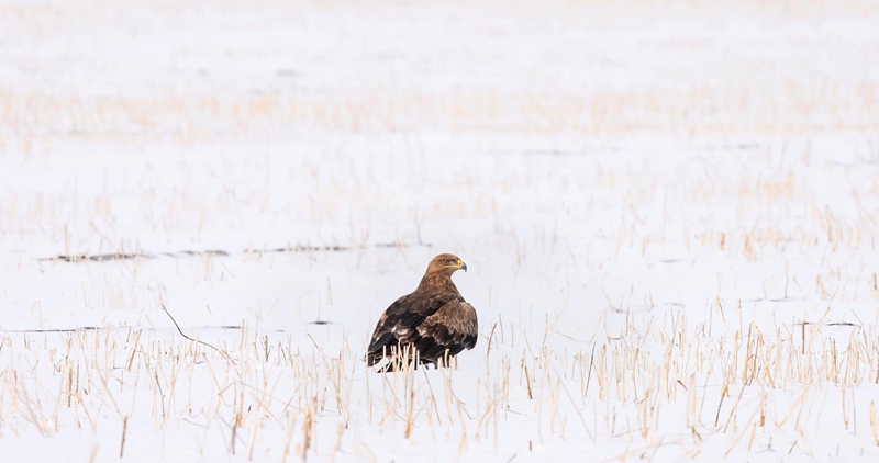 草原雕,别名大花雕、角鹰,属大型猛禽。其种群数量稀少,保护价值极高,不仅被列为国家一级重点保护野生动物,也被列入《世界自然保护联盟濒危物种红色名录》(IUCN)濒危等级。