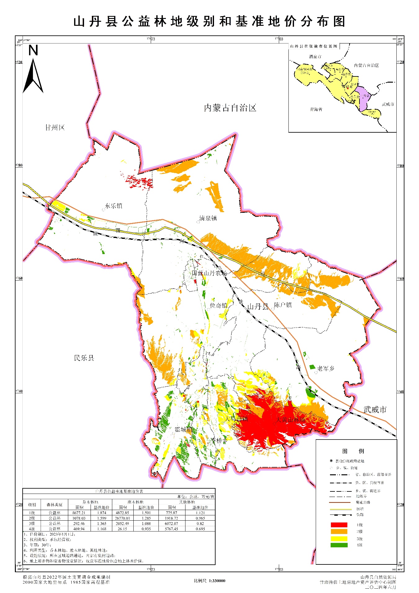 1.山丹县公益林(地)确定划分为4个级别。