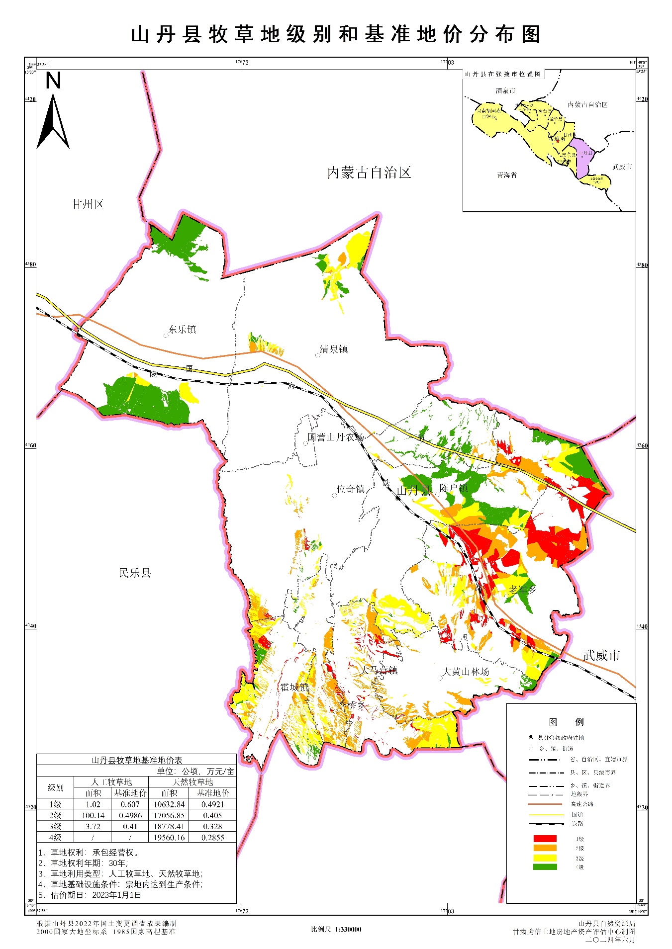 1.山丹县牧草地确定划分为4个级别。