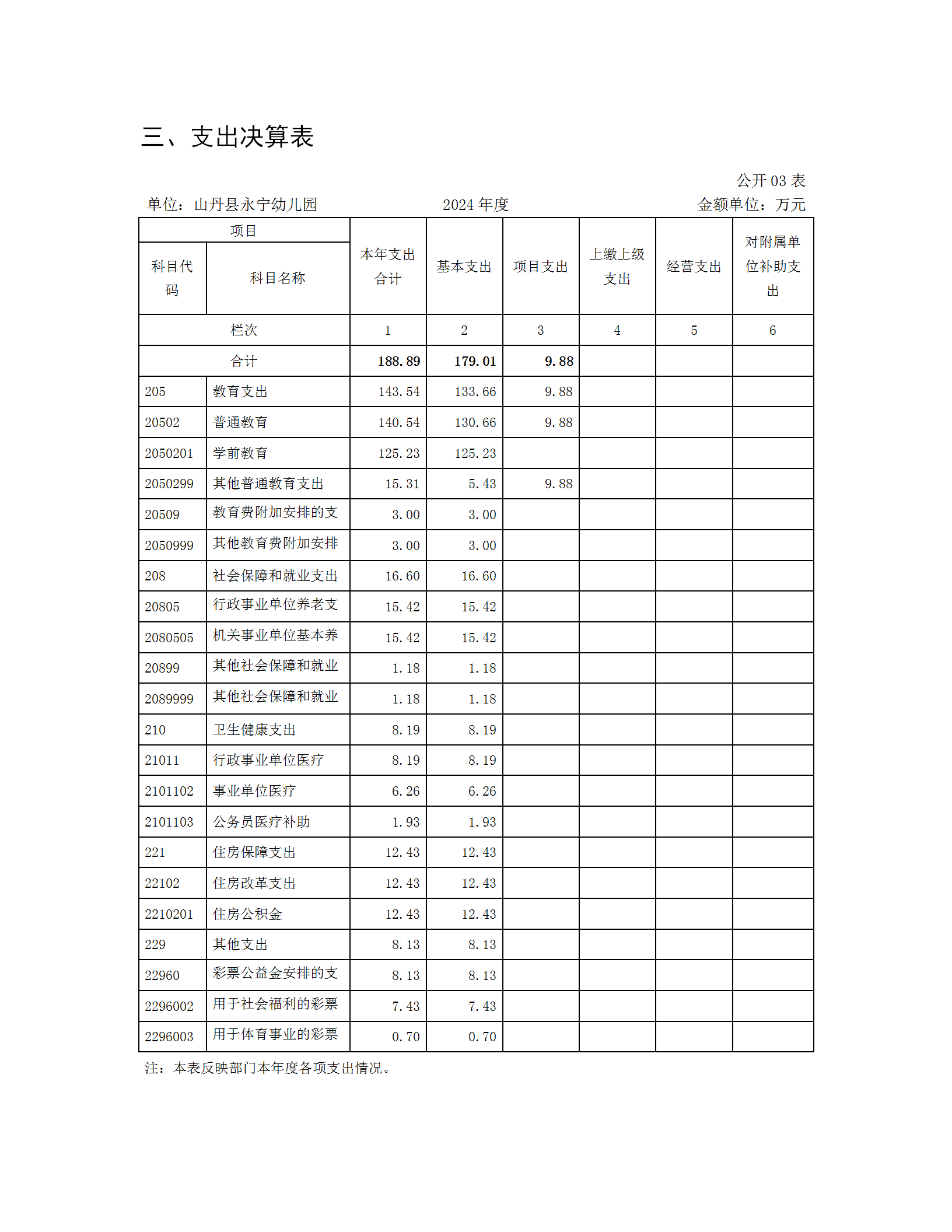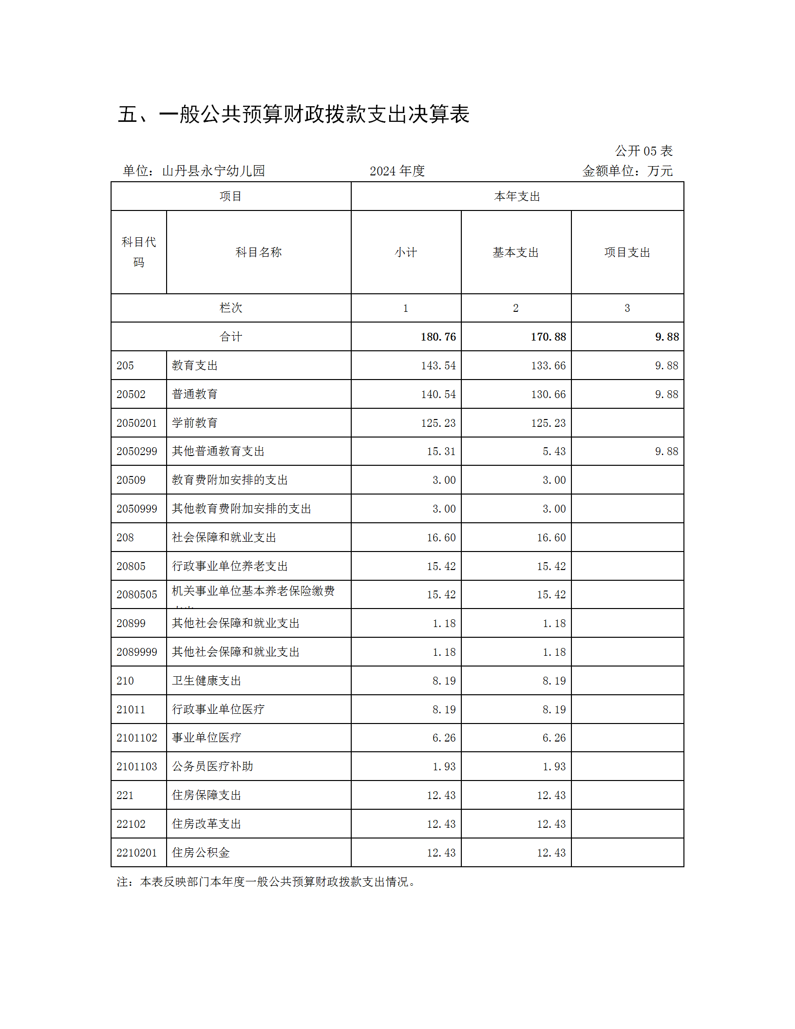 山丹县永宁幼儿园2024年决算公开