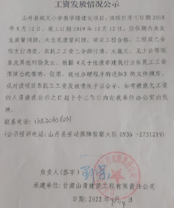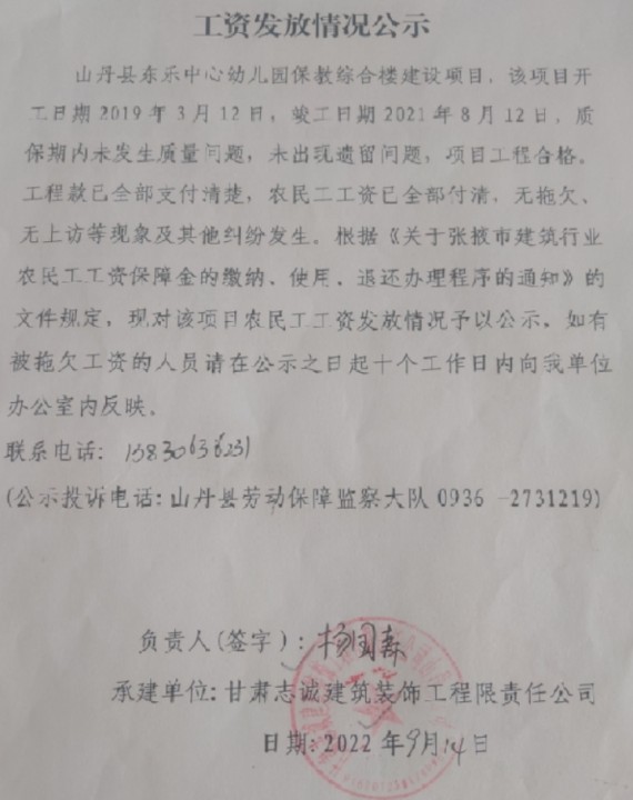 工资发放情况公示