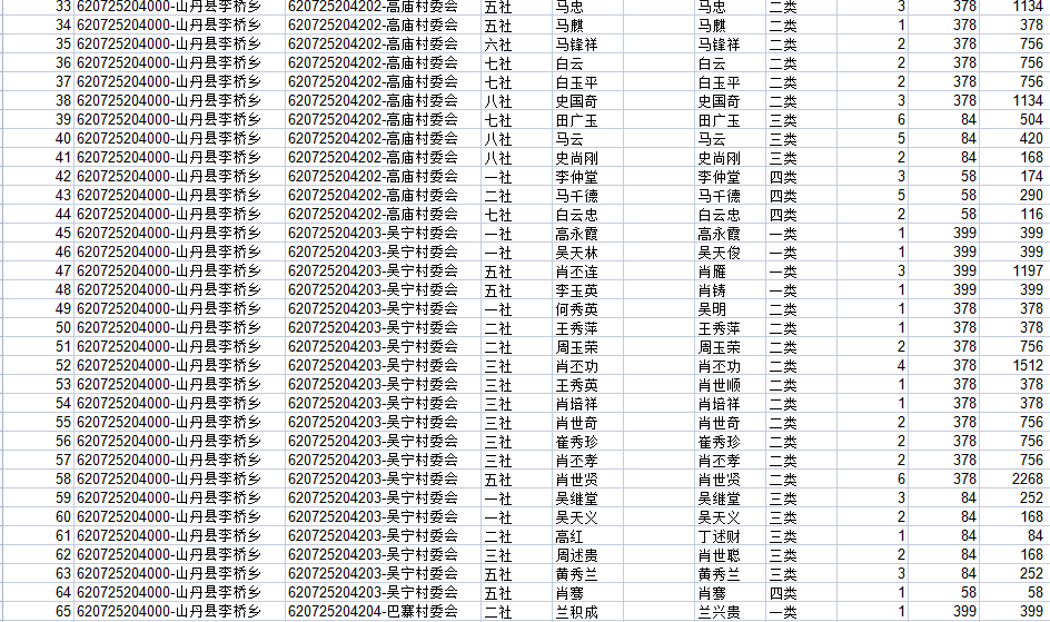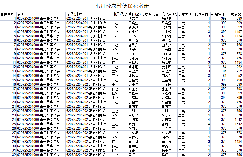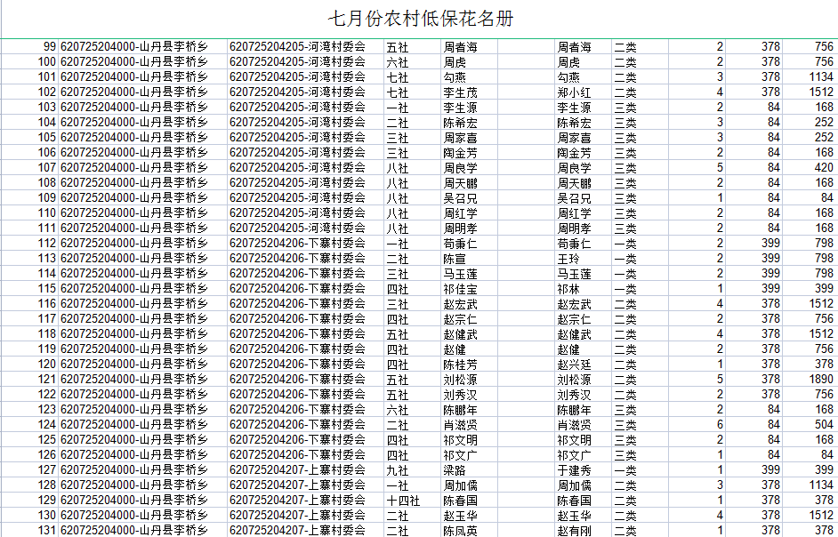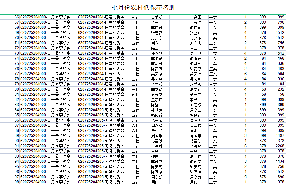 山丹县2021年7月农村低保花名册