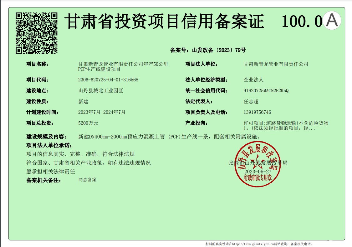 甘肃新青龙管业有限责任公司年产50公里PCP生产线建设项目