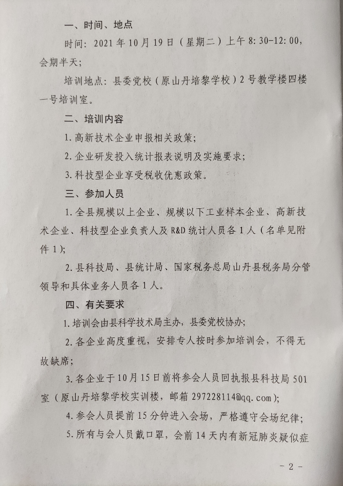 山丹县科学技术局 山丹县统计局 国家税务总局山丹县税务局关于召开全县企业研发投入统计暨高新技术企业申报培训会议的通知