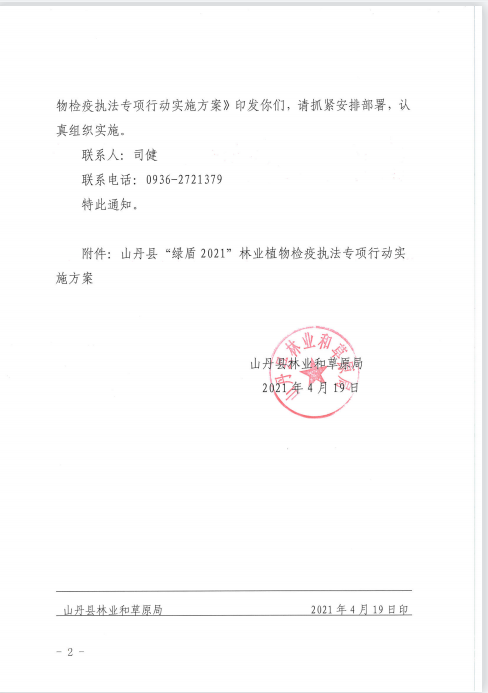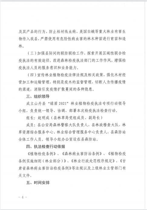 山丹县林业和草原局关于印发《山丹县“绿盾2021”林业植物检疫执法专项行动实施方案的通知》