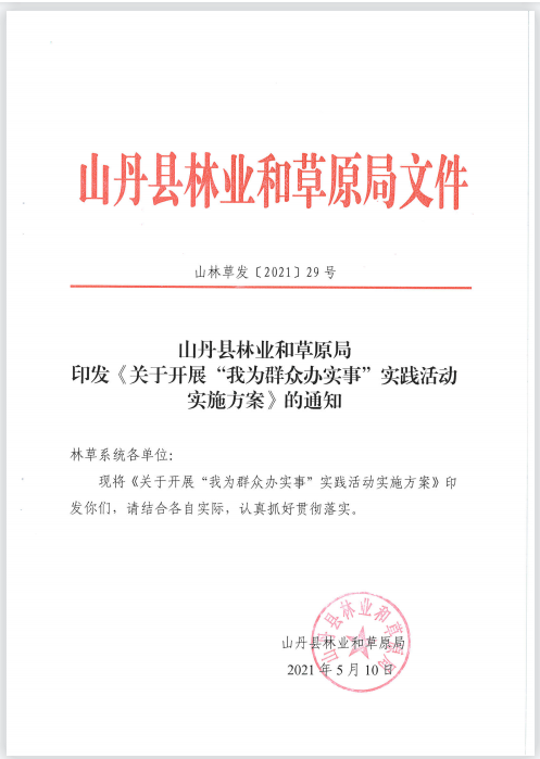 山丹县林业和草原局印发《关于开展“我为群众办实事”实践活动实施方案》的通知