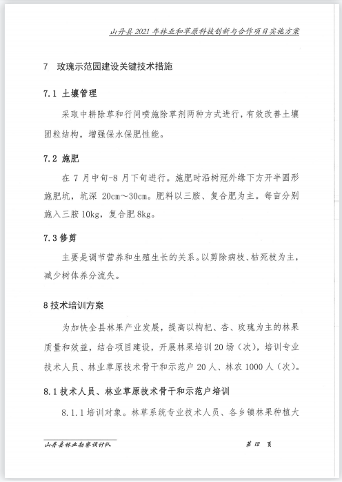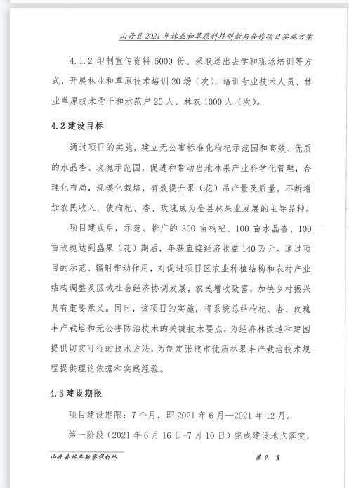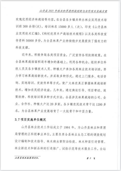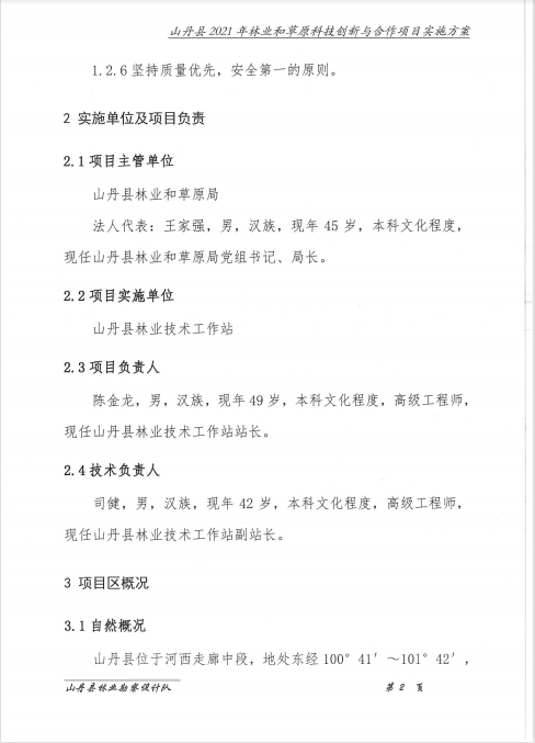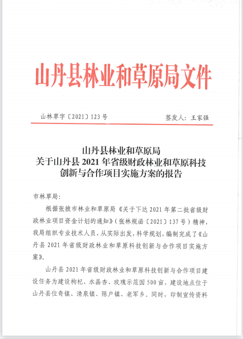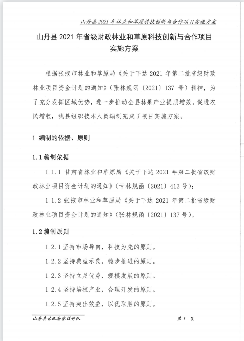 山丹县林业和草原局《关于山丹县2021年省级财政林业和草原局科技创新与合作项目实施方案的报告》