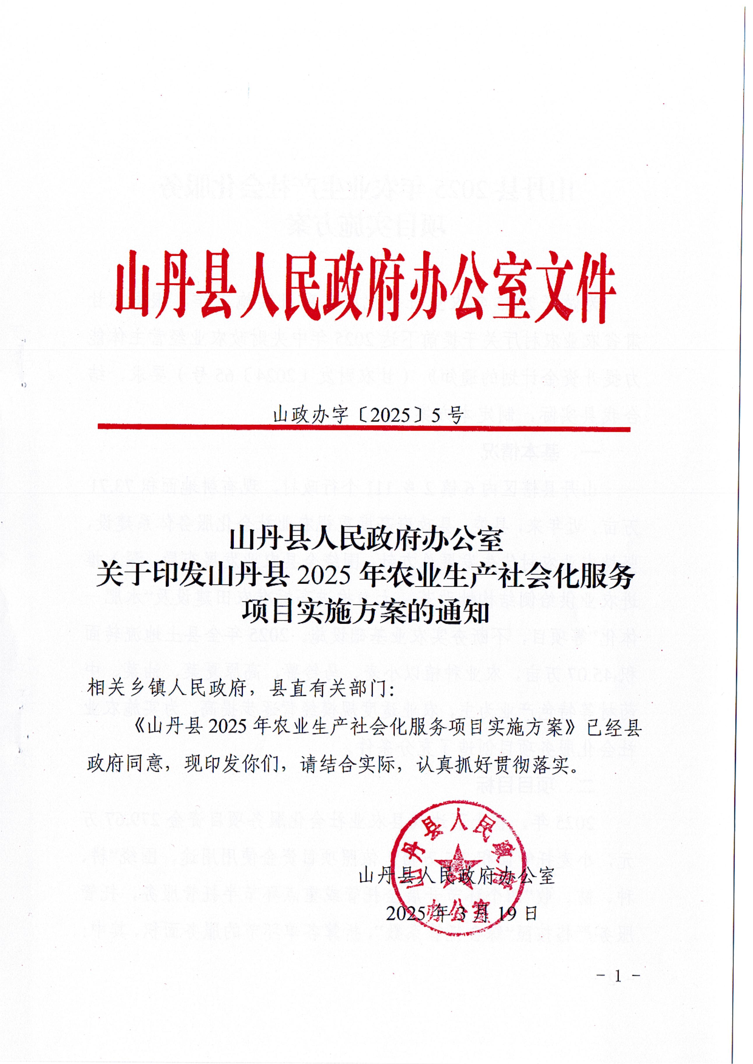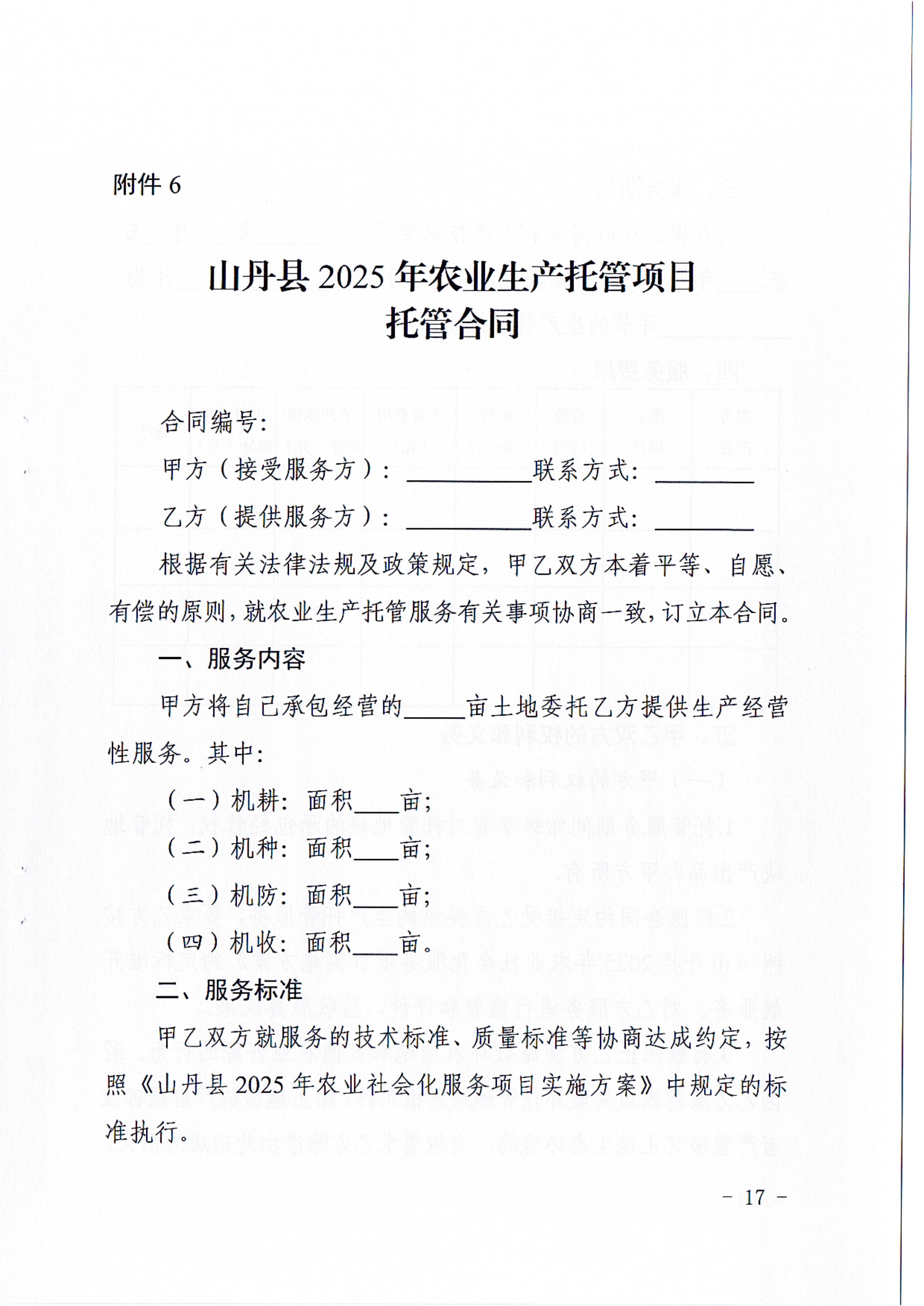 关于印发《山丹县2025年农业生产社会化服务项目实施方案》的通知