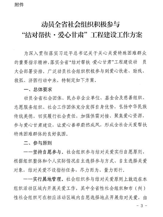 甘肃省民政厅关于印发动员全省社会组织积极参与结对帮扶爱心甘肃工程建设工作方案的通知