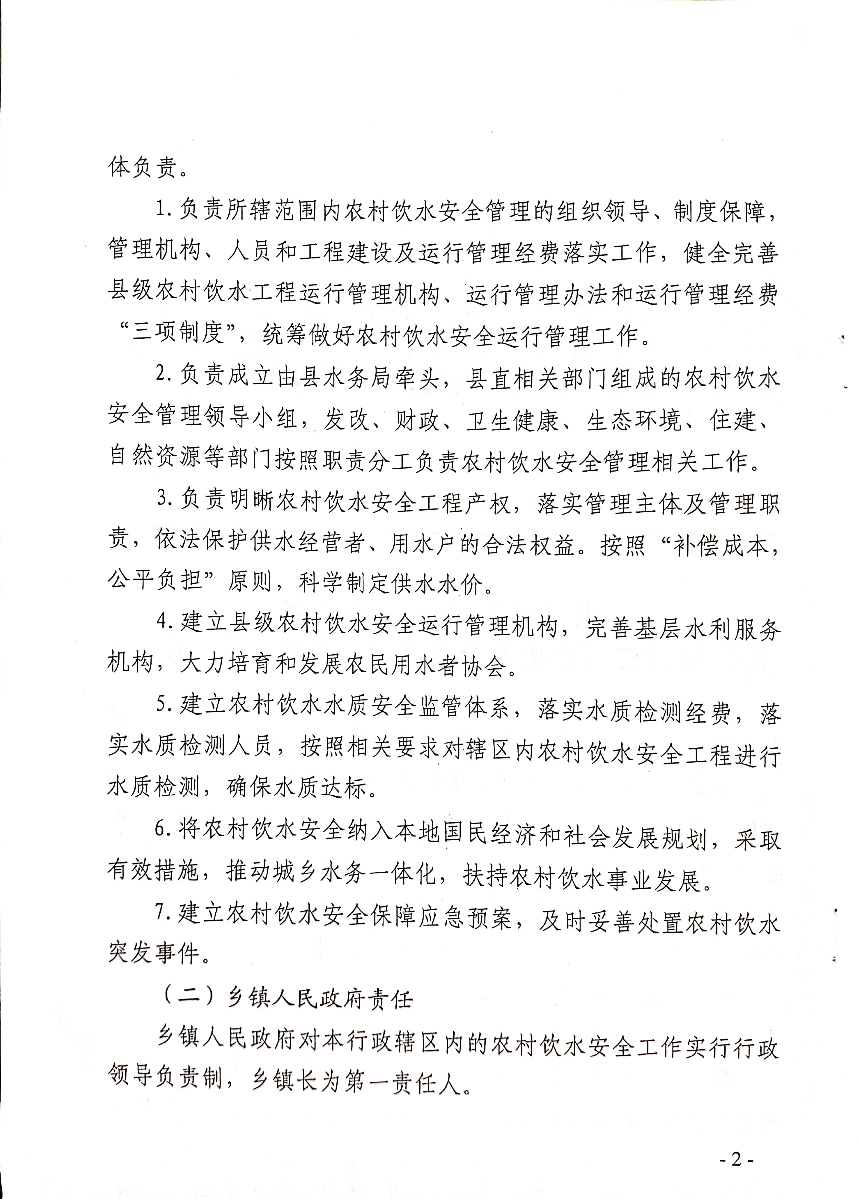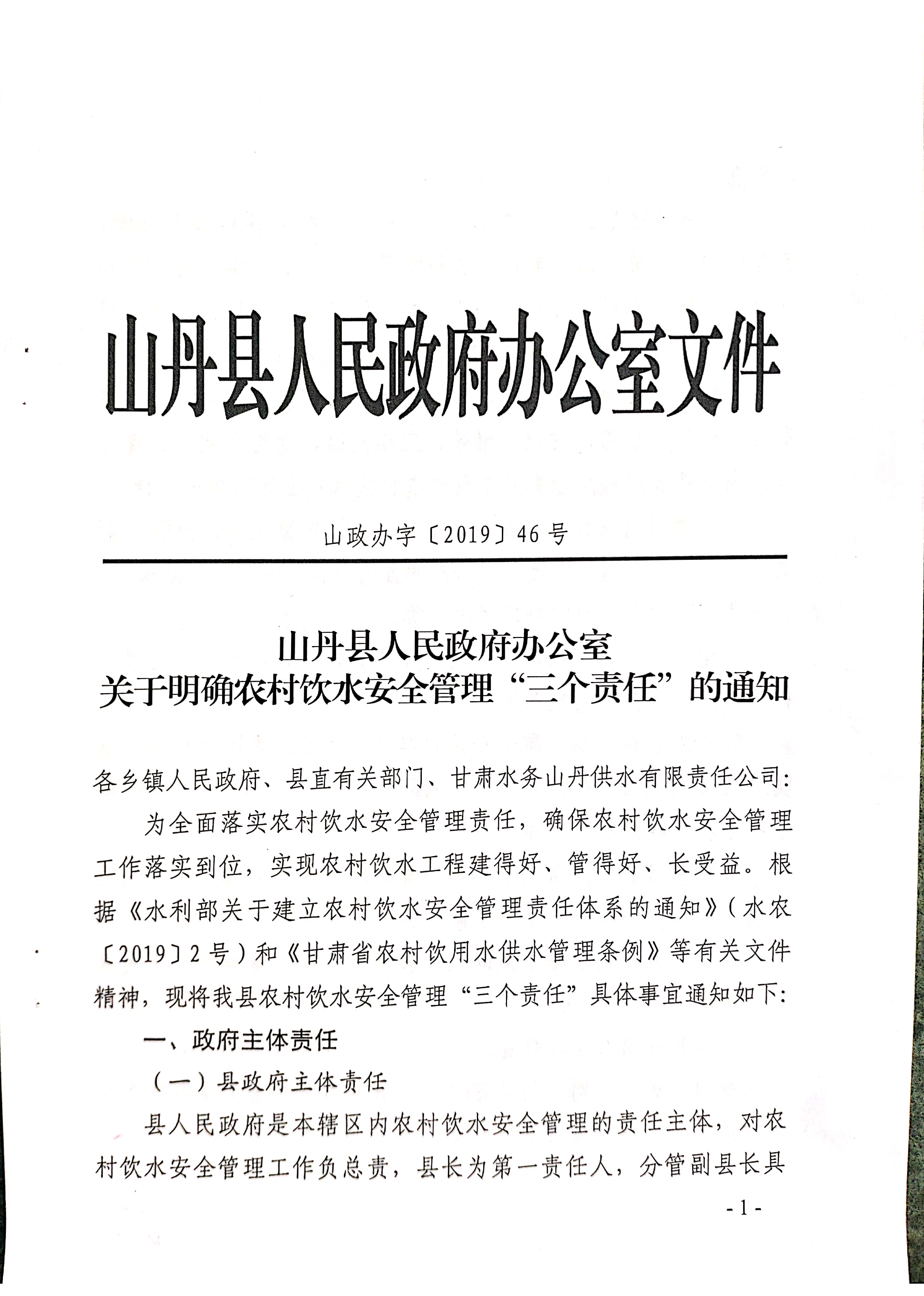 山丹县人民政府办公室关于明确农村饮水安全管理“三个责任”的通知