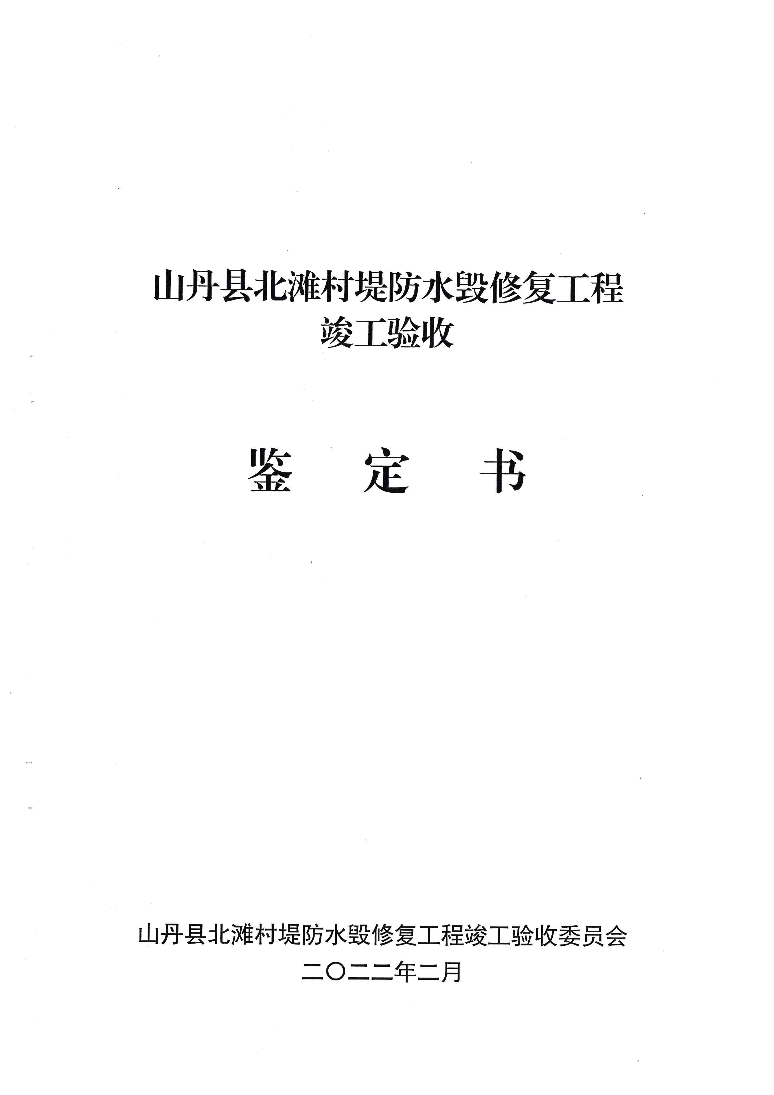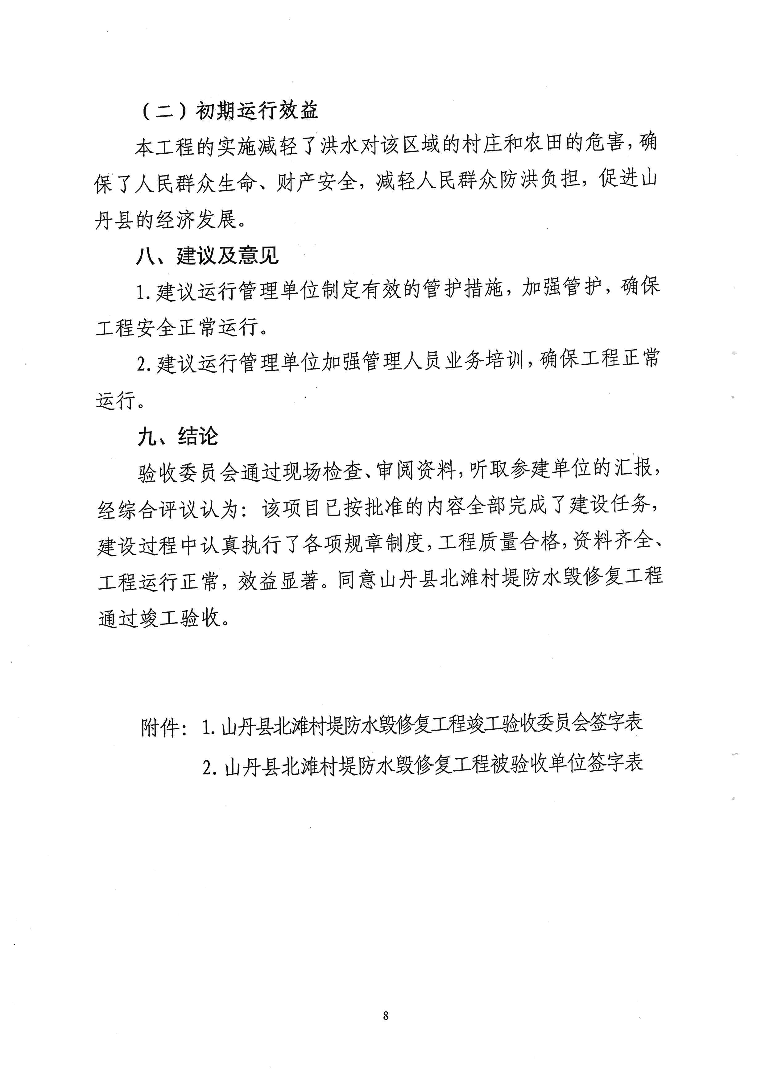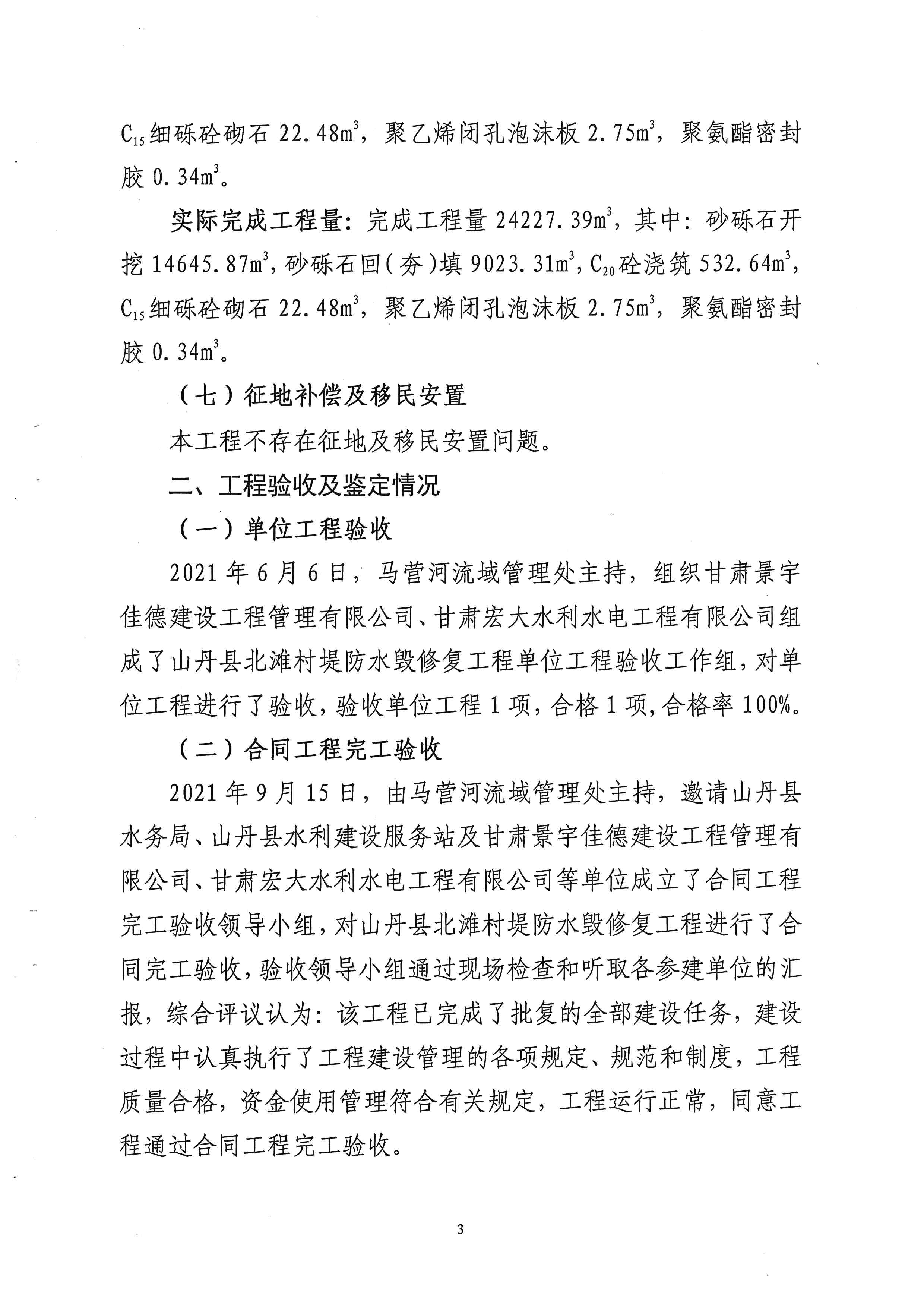 山丹县水务局关于山丹县北滩村堤防水毁修复工程竣工验收意见