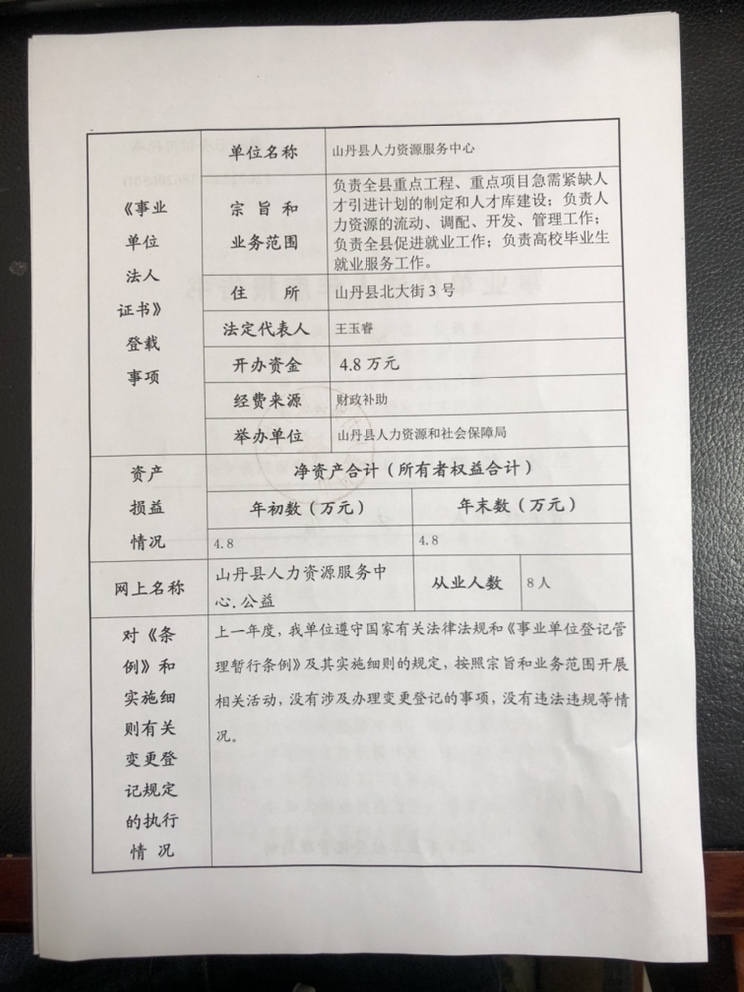 山丹县人力资源服务中心2021年度事业单位法人年报