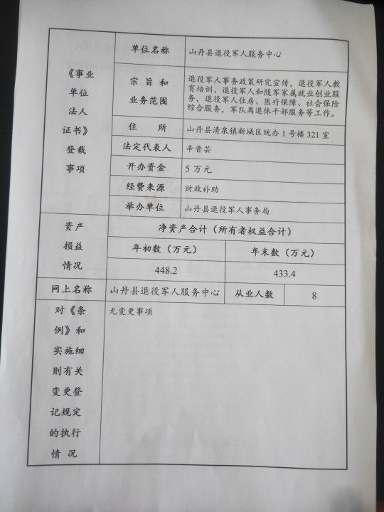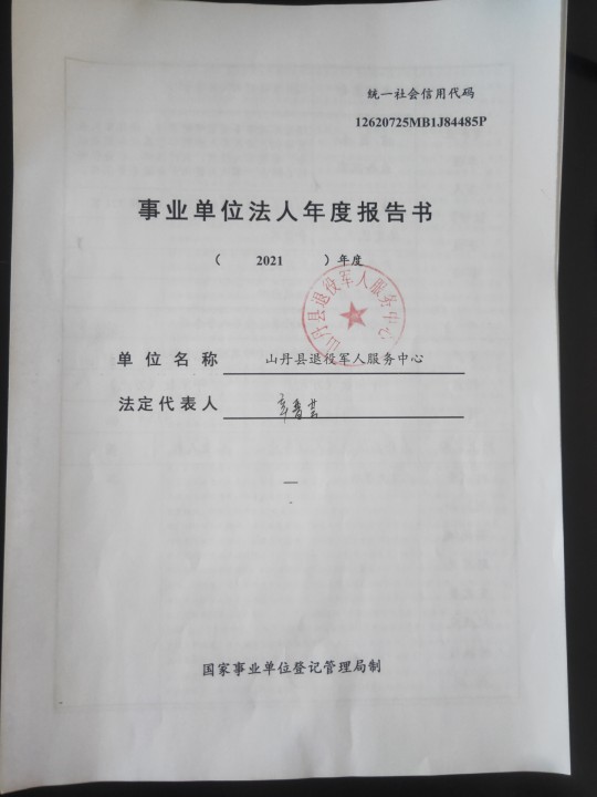 山丹县退役军人服务中心2021年度事业单位法人年度报告书