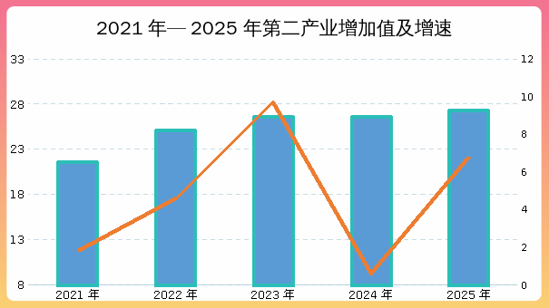 五年来,县委、县政府全力推进工业突破发展行动,充分发挥重点产业链带动引领作用,花草滩、东水泉煤矿完成产能技改扩能,煤炭年开发能力提升到330万吨;东乐北滩百万千瓦级光伏发电基地初具规模,新能源装机规模达到105万千瓦;全省最大的天然气应急储备基地张掖LNG储备中心建成投产,传统工业高端化、智能化、绿色化发展,新能源、新材料、生物医药等新兴产业集群加速崛起,工业成为经济发展、财政增收、促进就业的中坚力量。同时,县委、县政府围绕交通基建、水利设施、城市更新等领域,加大投资建设力度,城市面貌焕然一新,建筑业蓬勃发展。截止2025年末,规上工业企业数量达到35户,较“十三五”末增加11户,增长46%。资质内建筑业企业数量达到44户,较“十三五”末增加28户,增长175%。2025年,工业增加值达到15.6亿元,较“十三五”末增加6亿元,年均增长4.5%。建筑业增加值达到11.8亿元,较“十三五”末增加3.4亿元,年均增长4.9%。第二产业增加值达到27.3亿元,较“十三五”末增加9.3亿元,年均增长4.6%。