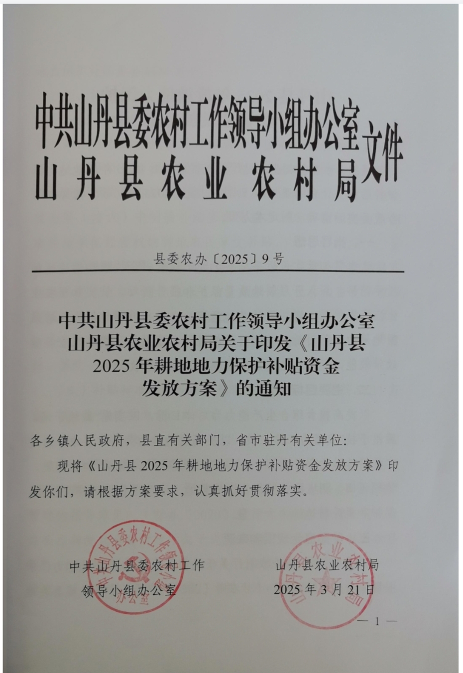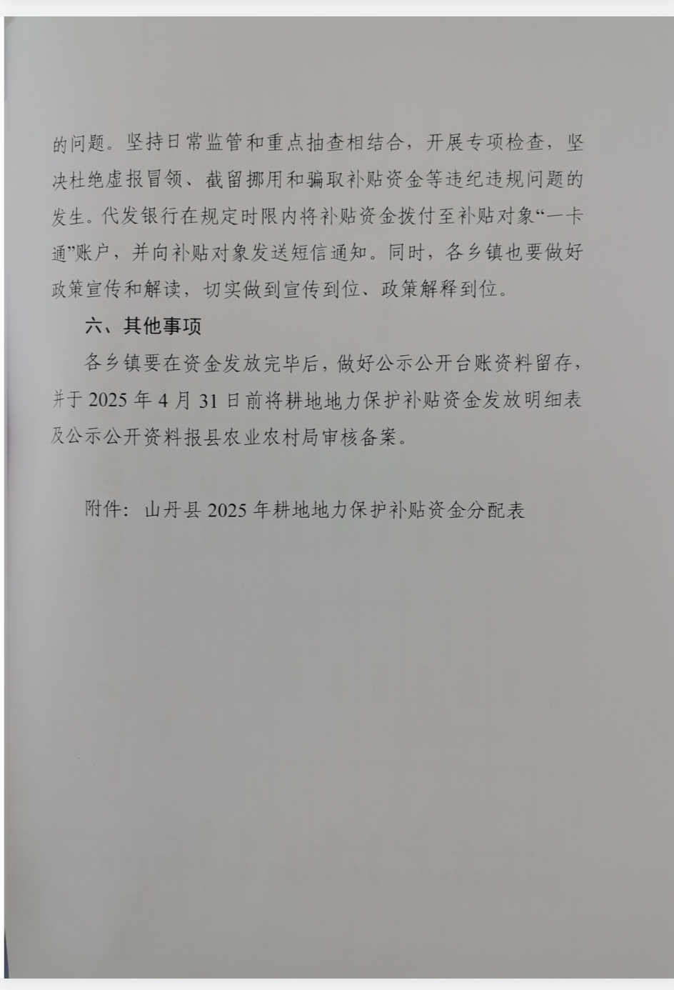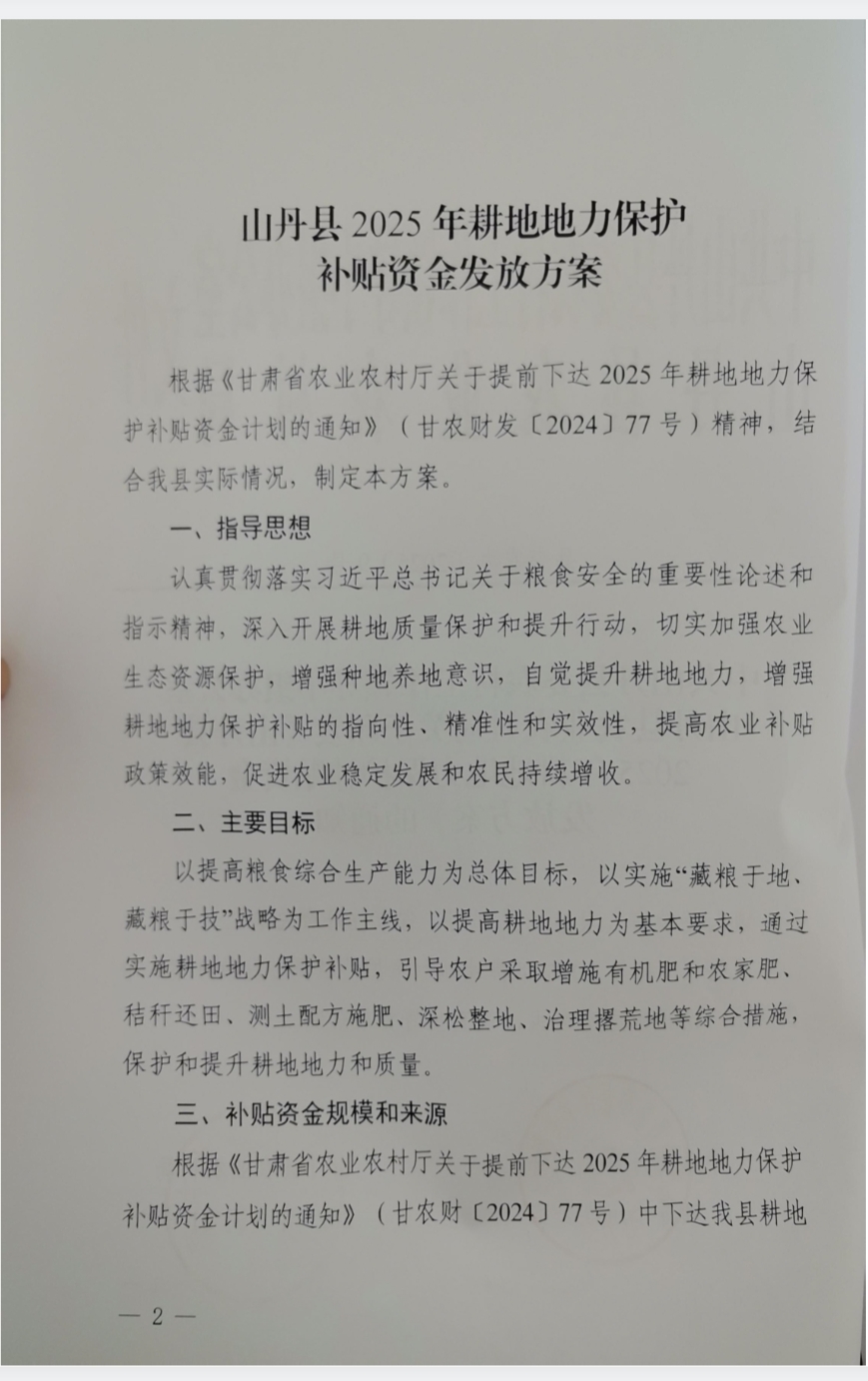 关于印发《山丹县2025年耕地地力保护补贴资金发放方案》的通知