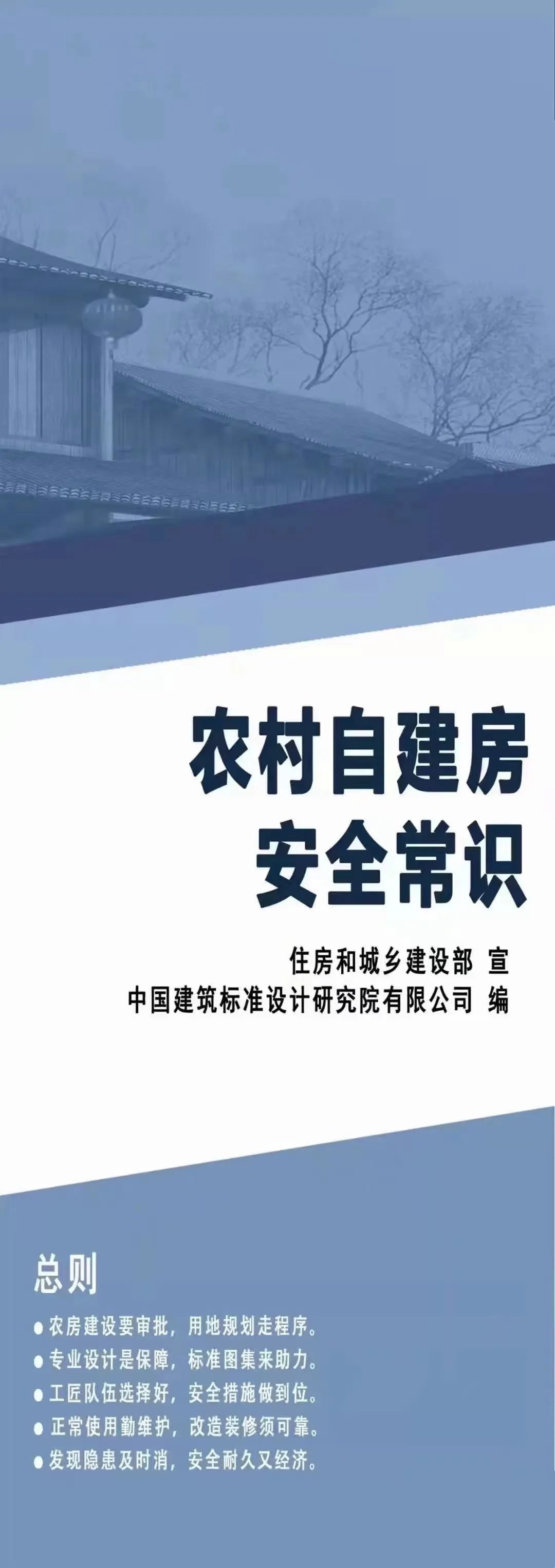 近日,住房和城乡建设部印发通知,要求各地加强农村自建房安全宣传工作,切实增强农村群众安全意识,并从农房建设选址布局、建造施工、使用维护等方面入手,以简明扼要、通俗易懂的文字描述和生动丰富的图片展示,编制了《“农村自建房安全常识”一张图》,供各地在宣传工作中使用。