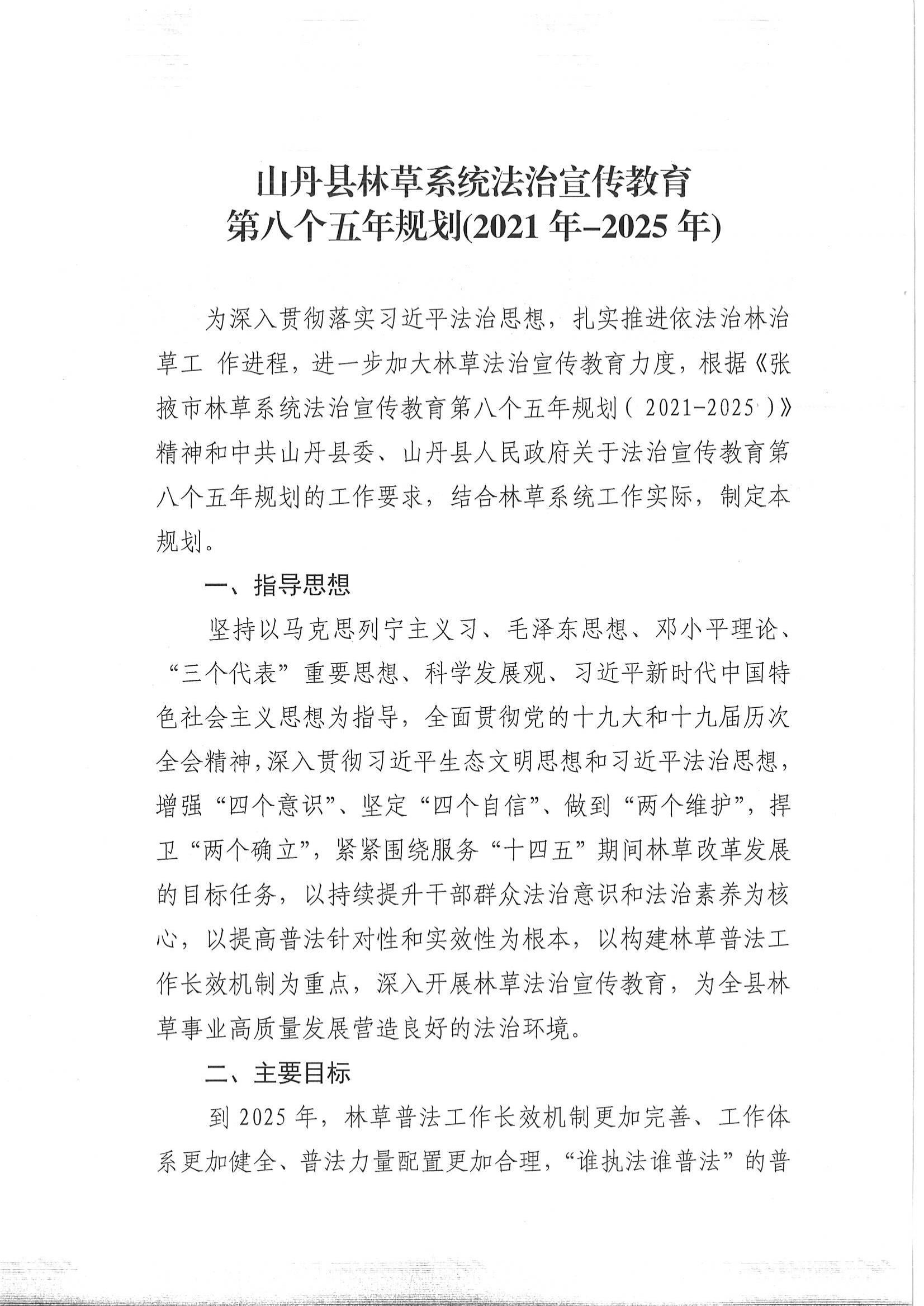 山丹县林业和草原局关于印发《山丹县林草系统法治宣传教育第八个五年规划(2021-2025年)》的通知