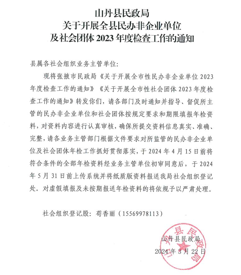 关于开展民办非企业及社会团体2023年度检查工作的通知