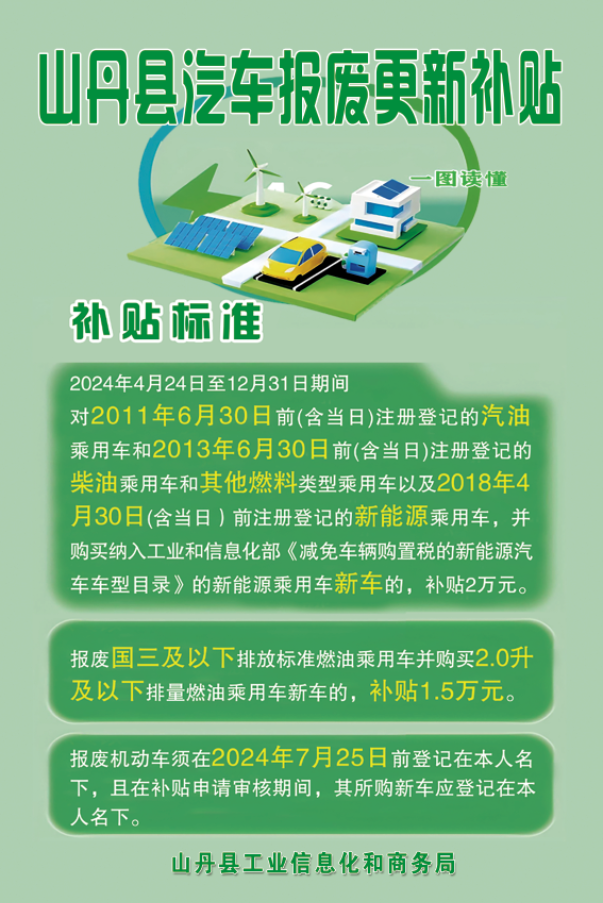 相关文件链接:关于印发《张掖市汽车报废更新和置换更新补贴实施细则》等4个实施细则的通知