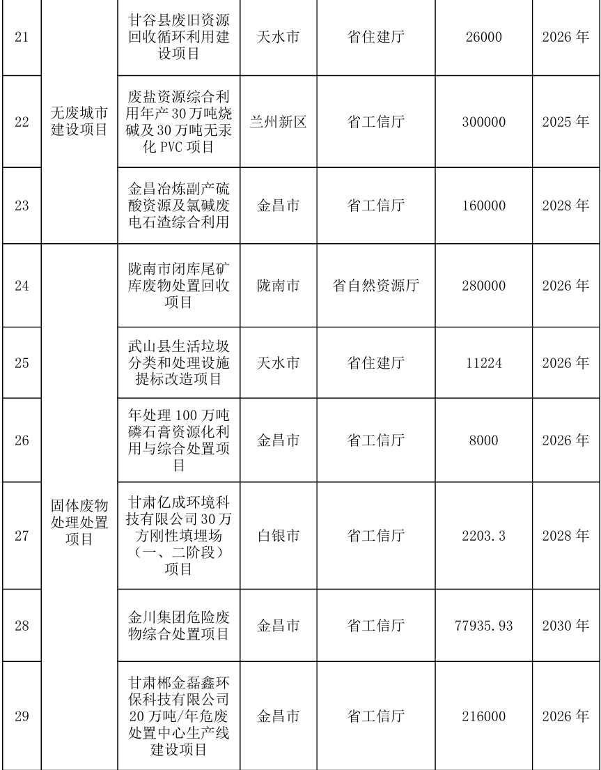(十四)提升固体废物处置能力。开展典型大宗工业固体废物堆存场所排查,强化尾矿、粉煤灰等固体废物综合利用,实施陇南79座闭库尾矿库废物处置回收项目。积极打造区域性再生资源加工利用基地和交易中心。建立新污染物协同管理机制。提升危险废物全过程信息化监管能力,谋划实施一批危险废物利用处置项目,着力减少危险废物填埋处置量。加快完善医疗废物收集转运处置体系,补齐医疗废物收集处理设施短板。开展城市建筑垃圾专项整治。实施塑料污染全链条治理,加强塑料废弃物规范回收利用。加快推进兰州、金昌、天水、兰州新区国家“无废城市”建设。(责任单位:省发展改革委、省工信厅、省自然资源厅、省生态环境厅、省住建厅、省卫生健康委)