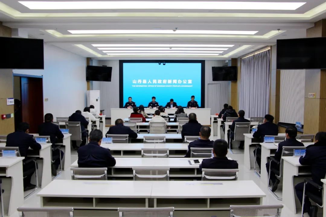 1月9日,在第四个“中国人民警察节”来临之际,山丹县公安局召开“庆祝中国人民警察节·向人民报告”新闻发布会。县新时代文明实践中心办公室副主任王国生主持发布会,局党委委员、常务副局长梁文安,局党委委员、副局长秦涛,局党委委员、政工监督室主任张明出席新闻发布会。