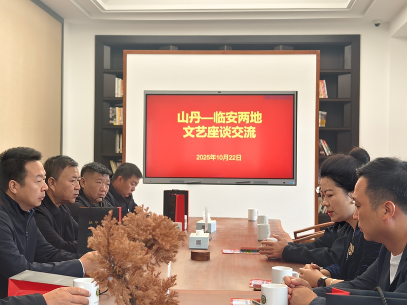 观展结束后,两地代表共同召开了文艺工作座谈会。会上播放了山丹县文旅宣传片,双方围绕如何进一步深化山丹与临安两地的文化旅游合作交流进行了深入探讨。座谈中,双方一致认为,临安本地并未发现与艾黎先生直接相关的历史资料,但作为与山丹长期保持密切的文化交流的地区,已经积累了非常深厚的友谊。此次“牢记嘱托·踏寻艾黎足迹”图片巡回展在临安成功举办,为双方深化文旅合作提供了新的重要契机。双方均表示,期待未来能继续加强互动,共同探索文旅协作的日常机制和新路径、新模式。